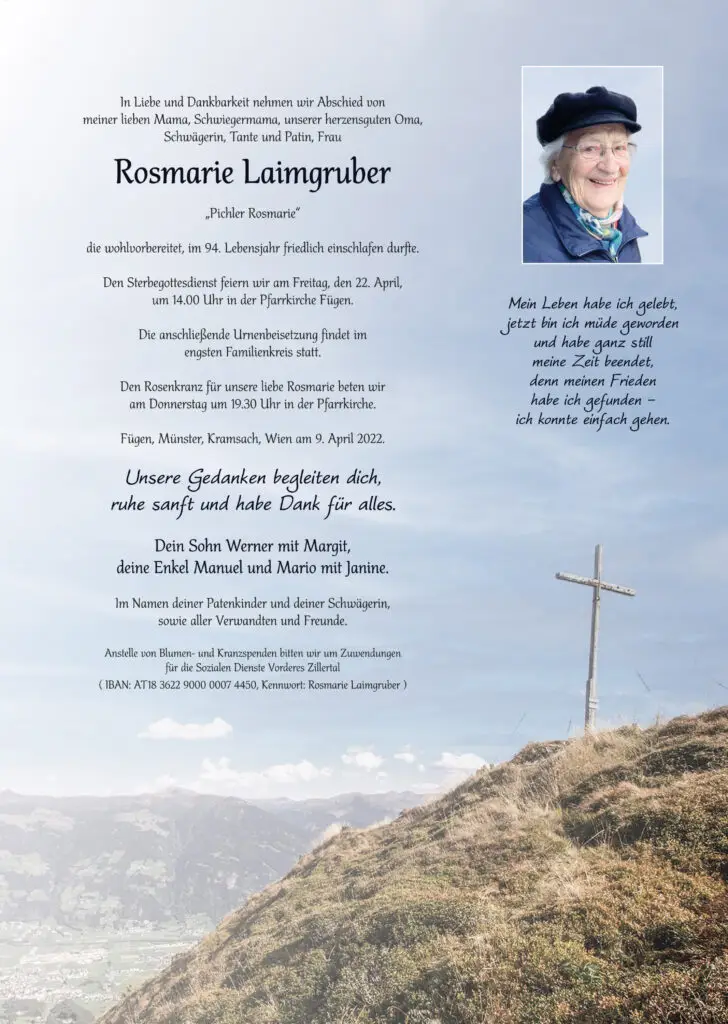 Laimgruber Rosmarie, 09.04.2022