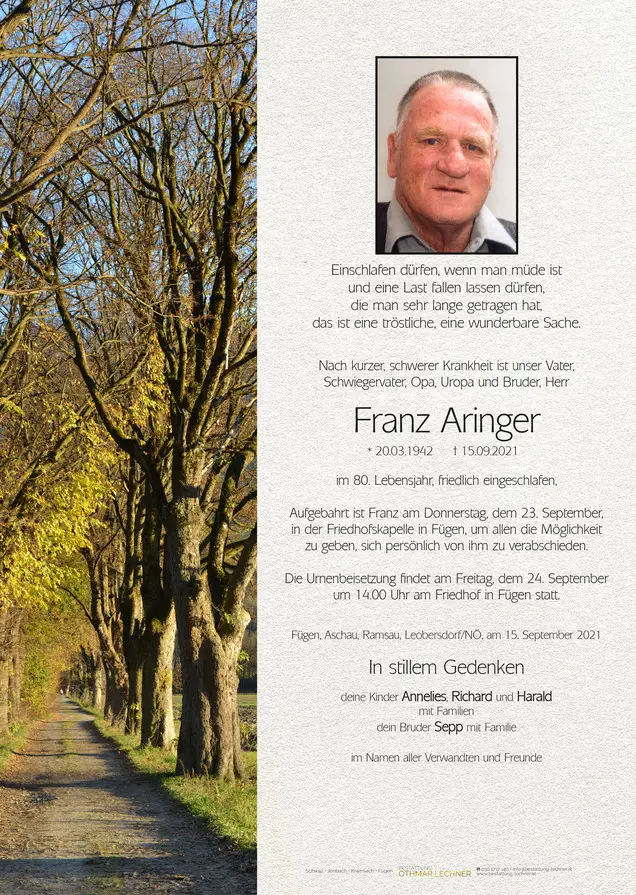 Aringer Franz, 15.09.2021